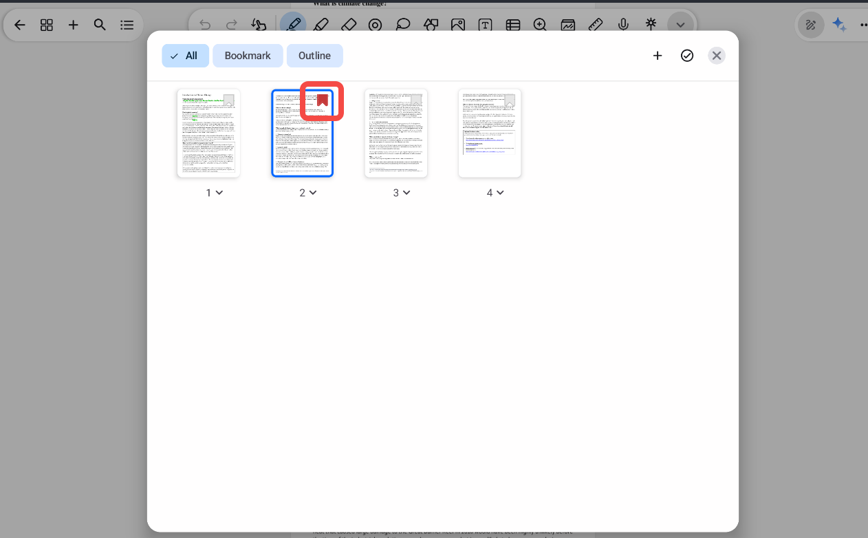 - Tap the Bookmark icon in the top-right corner of that page’s thumbnail.